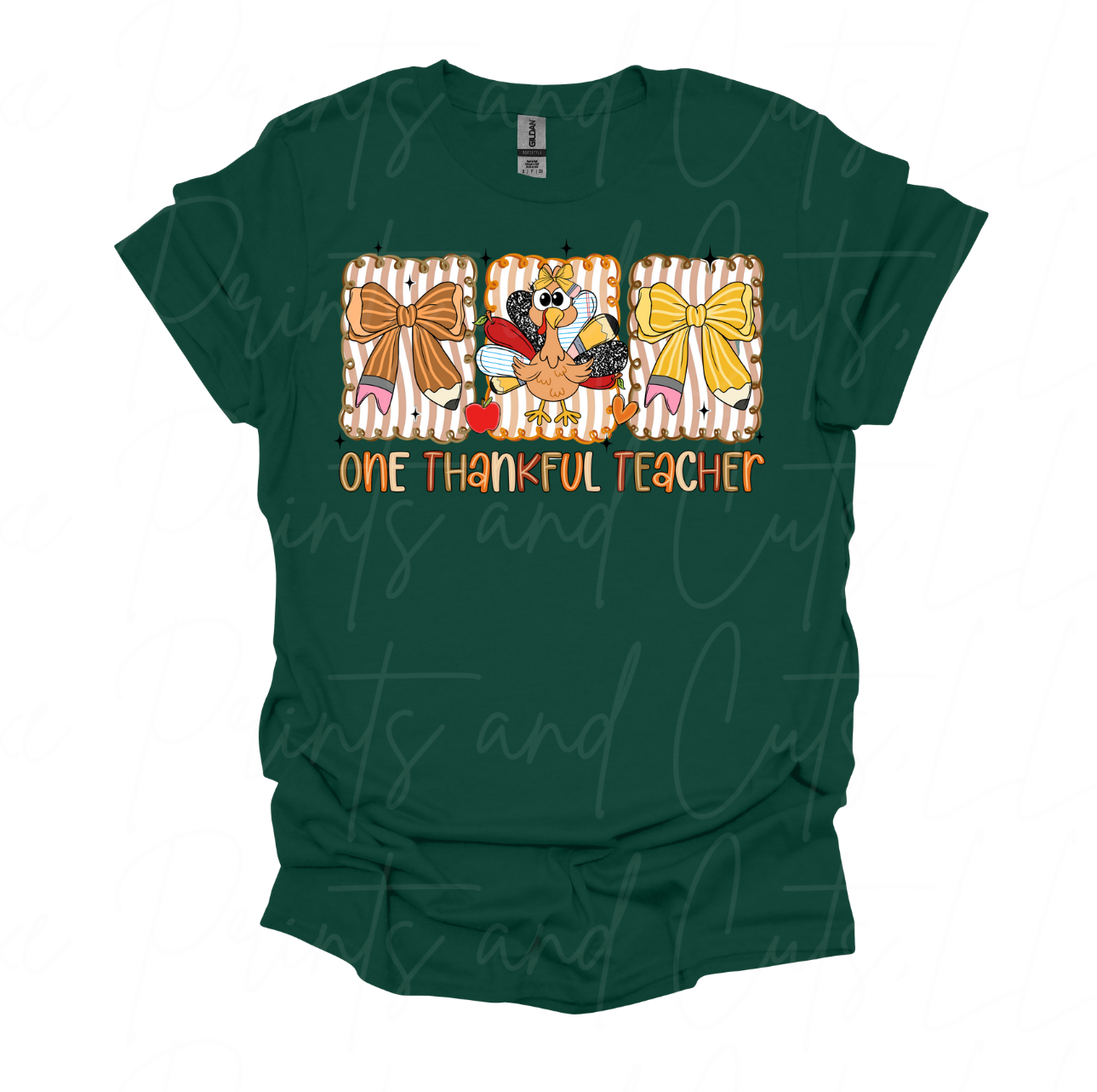 Celebrate the season of gratitude with this premium Gildan shirt, perfect for educators who inspire the next generation. Crafted from quality fabric that withstands frequent washing, this tee delivers comfort and durability for everyday wear. The "One Thankful Teacher" design captures the essence of appreciation during the Thanksgiving holidays, making it an ideal gift for the educators in your life. Whether worn in the classroom or around town, this shirt serves as a meaningful tribute to those who shape young minds. Express your gratitude in style with a garment built to last.