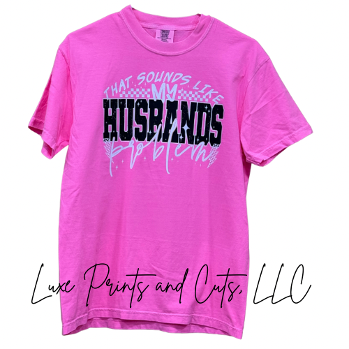"Get a laugh with this neon pink comfort color shirt featuring the design "That Sounds Like My Husbands Problem." Perfect for anyone with a sense of humor and a husband who can relate. Comfortable and eye-catching, this shirt is sure to be a hit at any occasion."