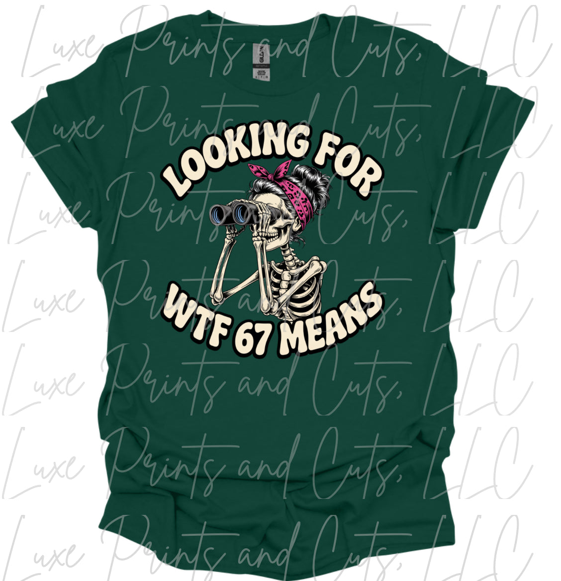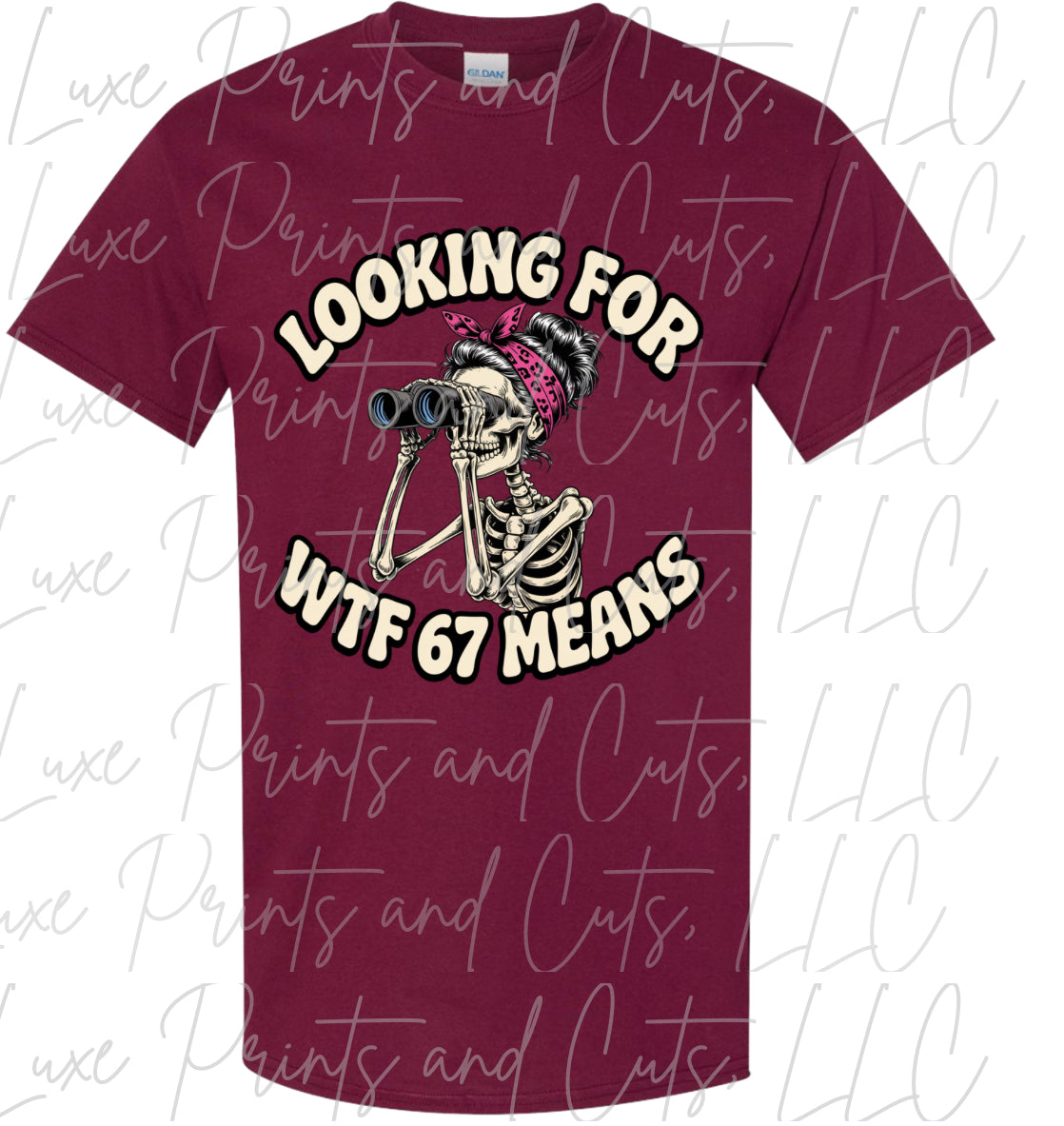 Learn the meaning of "WTF 67" with our gildan brand shirt. Perfect for humor enthusiasts, this shirt will have everyone asking and laughing. Made with high-quality materials, you'll be comfortable and stylish while showing off your knowledge.